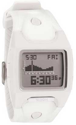 You will know if it's time for dawn patrol or extra sleep with the Men's Lodown Watch from Nixon. With the help of this full-bore tide watch, you won't miss another sick set. Nixon stored tide information from 200 international beaches for the next 15 years inside this watch to keep you charging no matter where in the world you wake up. Keep all this information safe and strapped to your wrist in a tough polycarbonate case. Crash the break first with the Lodown's dual time zones, countdown timer, and a night-light. *Available for US shipment only.Product Features